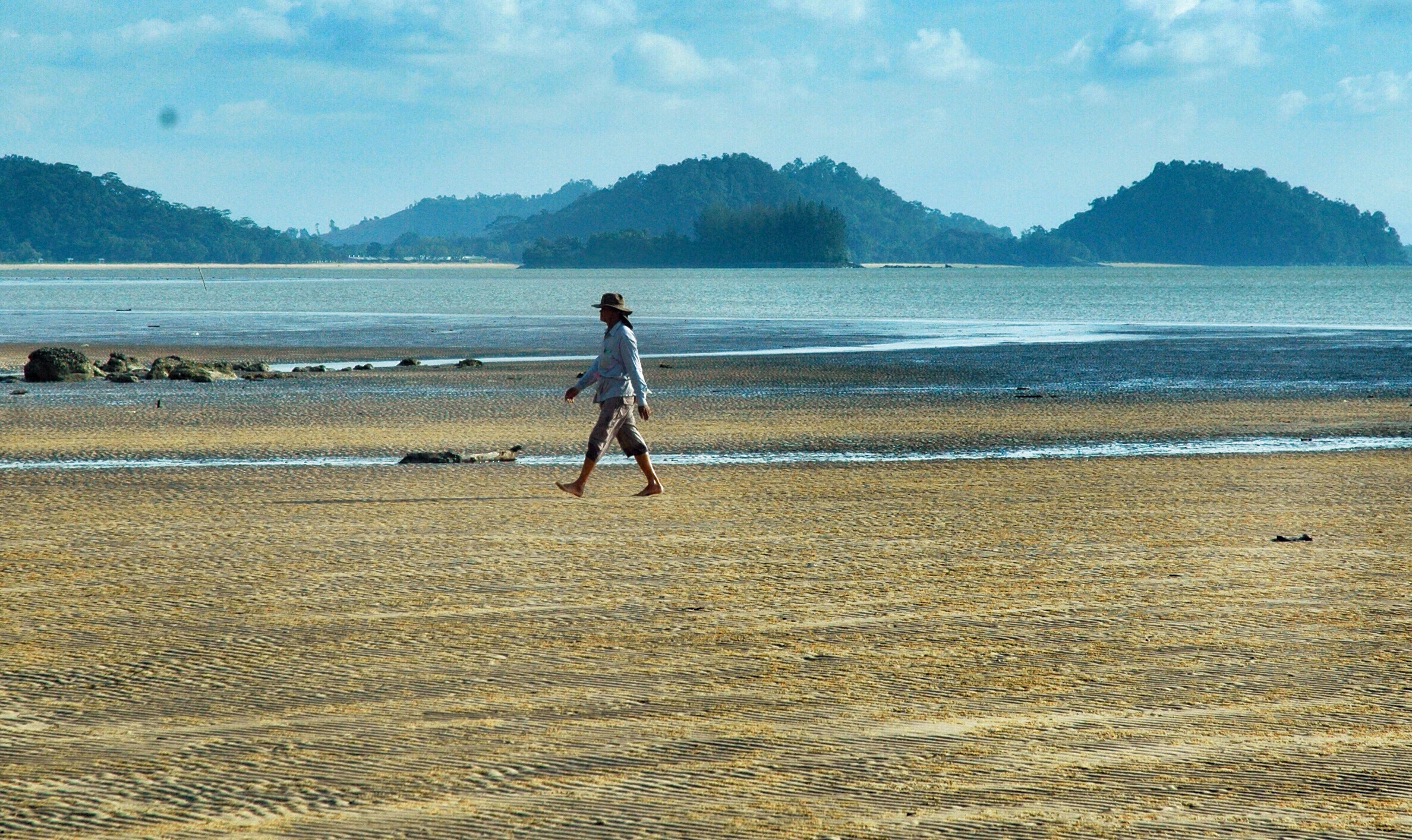 Jeg har tidligere overnattet hos en fiskerfamilie i en landsby et andet sted på kysten. I modsætning til Telaga Air Village, der ligger ved en af Borneos utallige floder, lå den første landsby ved havet. Der trak tidevandet sig hver morgen flere kilometer ud fra kysten, og bevæbnet med spande og specielle graveredskaber vandrede landsbyens mænd og kvinder en kilometer ud på havet. Turen under den brændende sol og på den mudrede havbund var hård, og fra land kunne de lige øjnes som små prikker langt ude i horisonten, når de gik og gravede efter muslinger og andre skaldyr. Denne landsby levede ikke af fisk, men af skaldyr. I den mangroveskov, der snoede sig ind imellem landsbyens pælehuse vrimlede det med krabber i alle størrelser, der blev fanget i dertil indrettede bure.