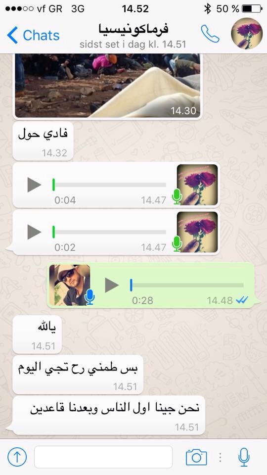 “Hjælp os. Her er babyer og børn, gamle og handicappede. Vi har været her i tre dage. Vi er sultne. Vi fryser. Mange er syge. Vi behøver hjælp, inshallah Fahad fra Syrien, Farmakonisi,” står der på arabisk. Det er begyndelsen af december, og vejret er begyndt at blive dårligt, storme og kulde om natten.