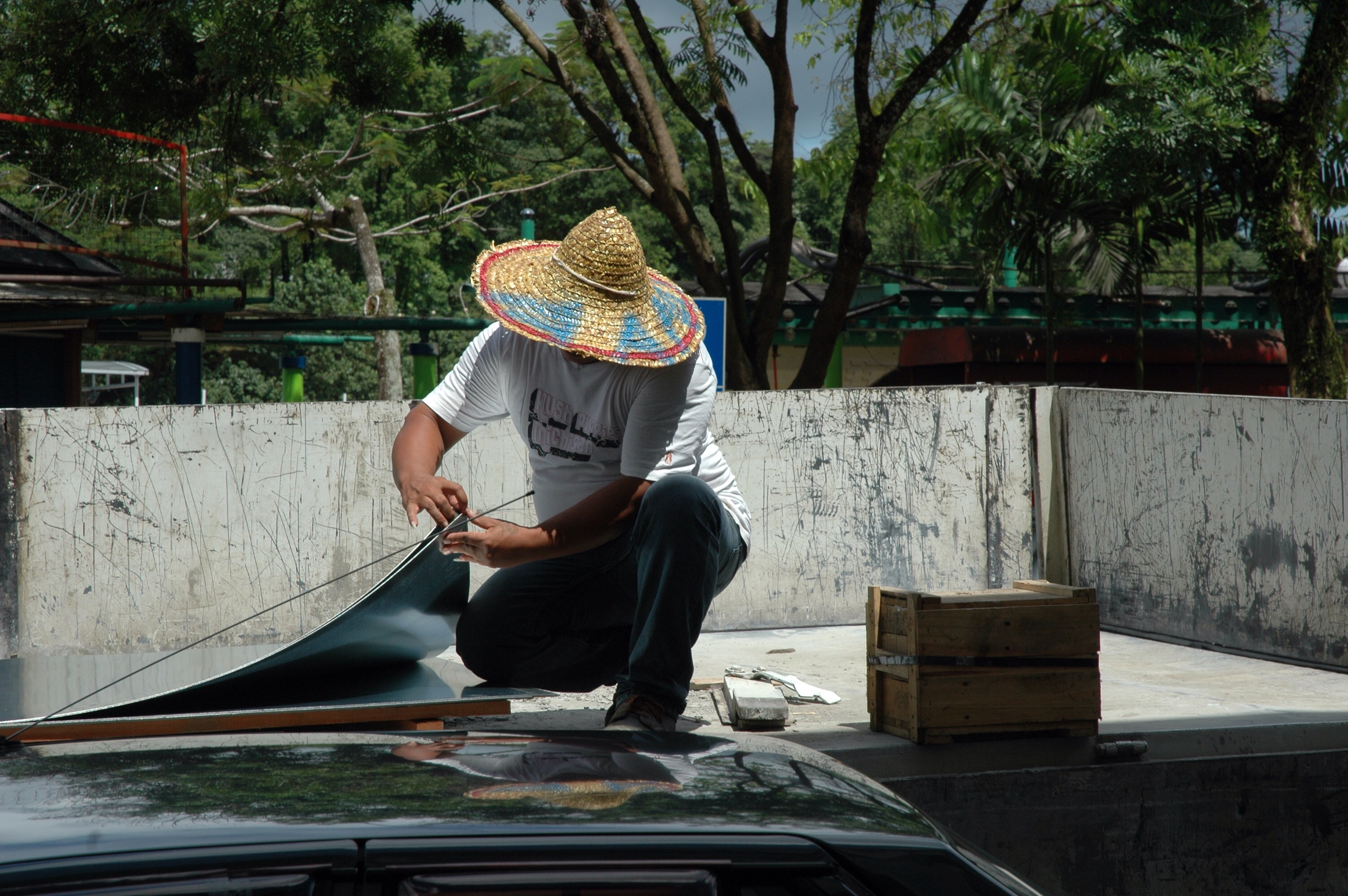 Men nu rejser en mand i hvid skjorte sig pludselig op og går med en lille notesbog i hånden hen til UN-repræsentanterne. Han peger på bogen, hvor de skal skrive deres navne, og dernæst kommer han til mig og vil have mit navn, og han spørger, hvad jeg laver her. De andre har kun skrevet deres fornavne, så det gør jeg også. Det viser sig, at manden er fra sikkerhedspolitiet og gift med den kvindelige lærer på skolen. Muhammed forklarer ham, hvem jeg er, og han stiller sig tilfreds.