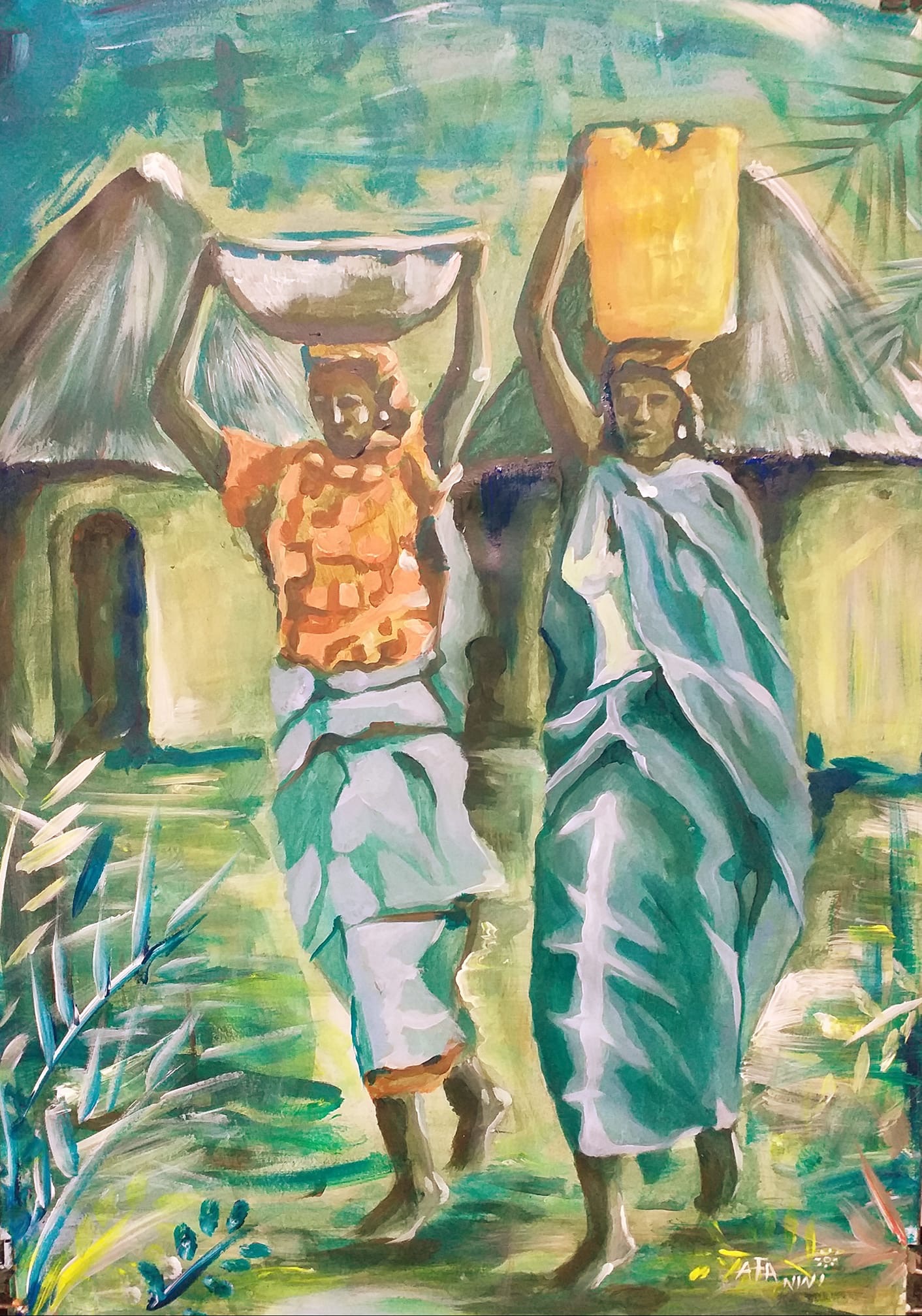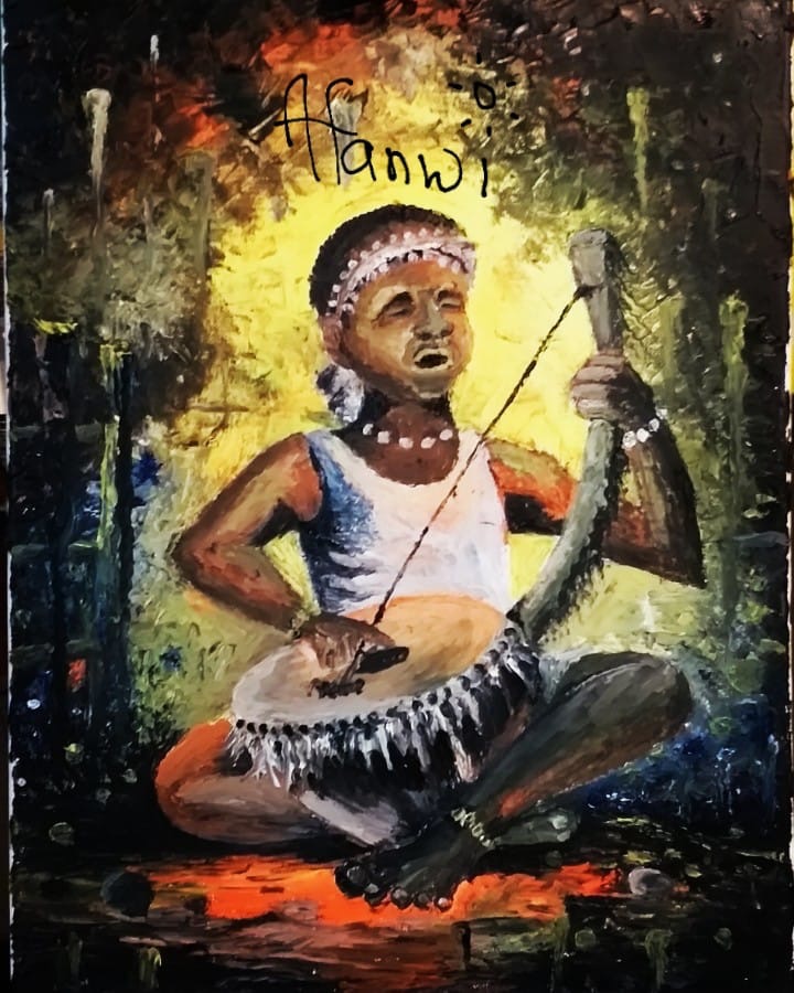 Afanwi er ikke kun god til at male. Han er også god til at fortælle: