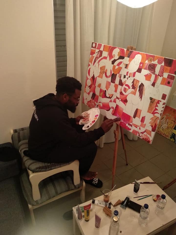 Når mareridtene kommer, står Afanwi op og maler resten af natten. Så undgår han at sove og arbejder – med egne ord – hårdt.