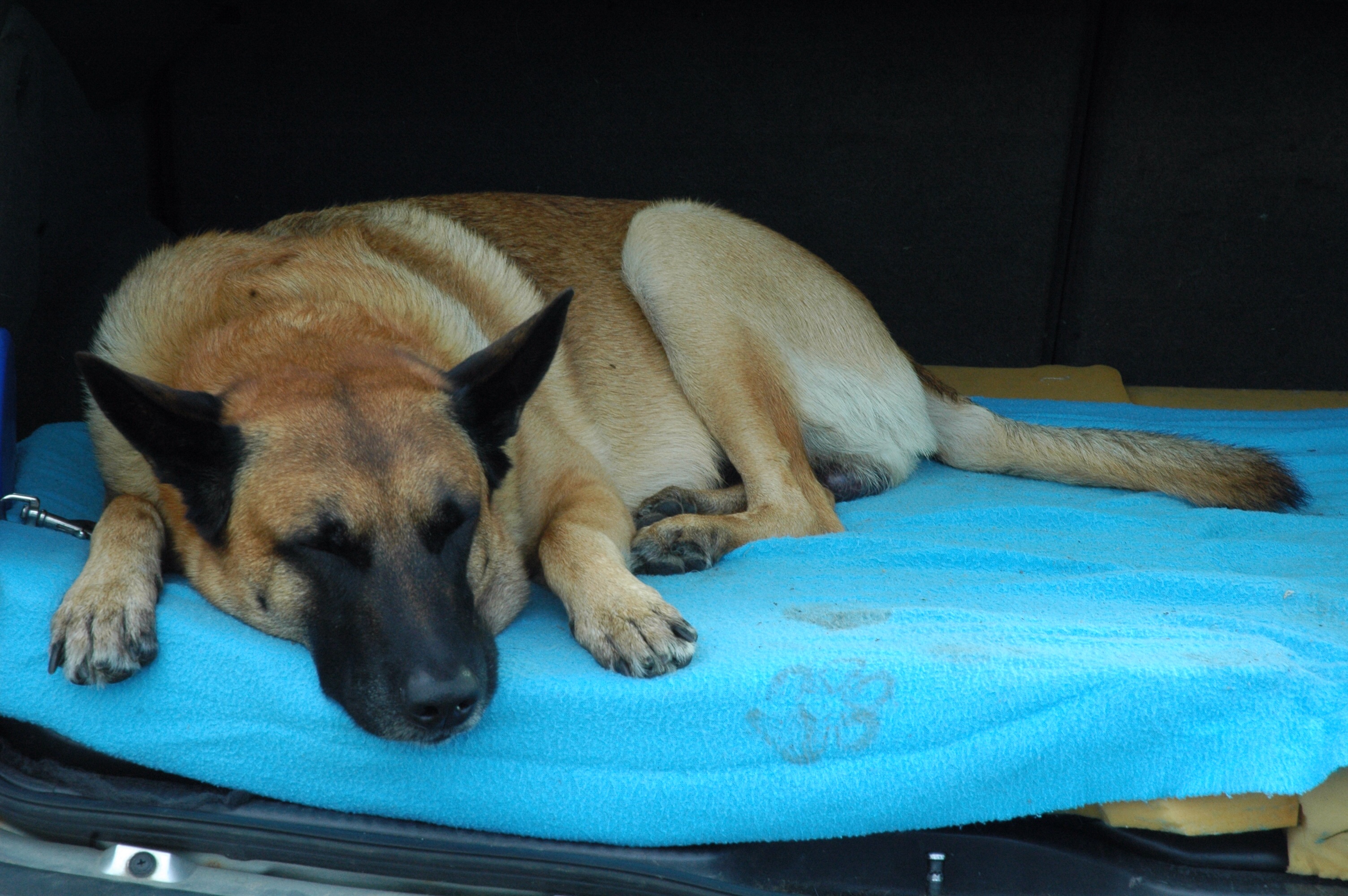 Først åbner hun bagsmækken en lille smule. Så stikker hun hånden ind og får fat i hundesnoren, og så åbner hun helt, og vi kan springe ud. Når vi så er ude af bilen, får vi en godbid. Bare en lille bitte kiks. Vi får aldrig mere hamburgerryg. Det er ærgerligt for mig, for jeg synes, hamburgerryg er det bedste af al ting. Godbidderne ligger i en plastikpose på bagsædet og en gang imellem glemmer vores plejemor, at vi skal have godbidder. Men så minder jeg hende om det og trækker hende hen til døren.