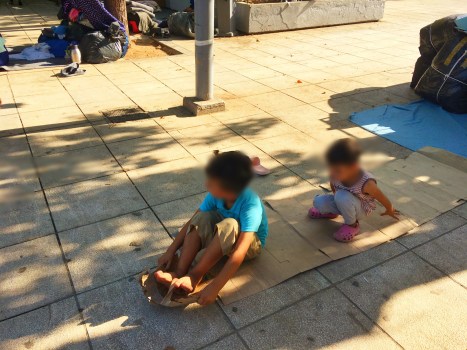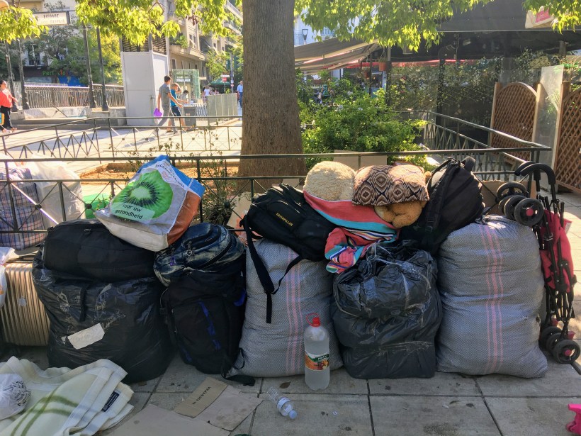 Homeless refugee families living on the streets of Athens